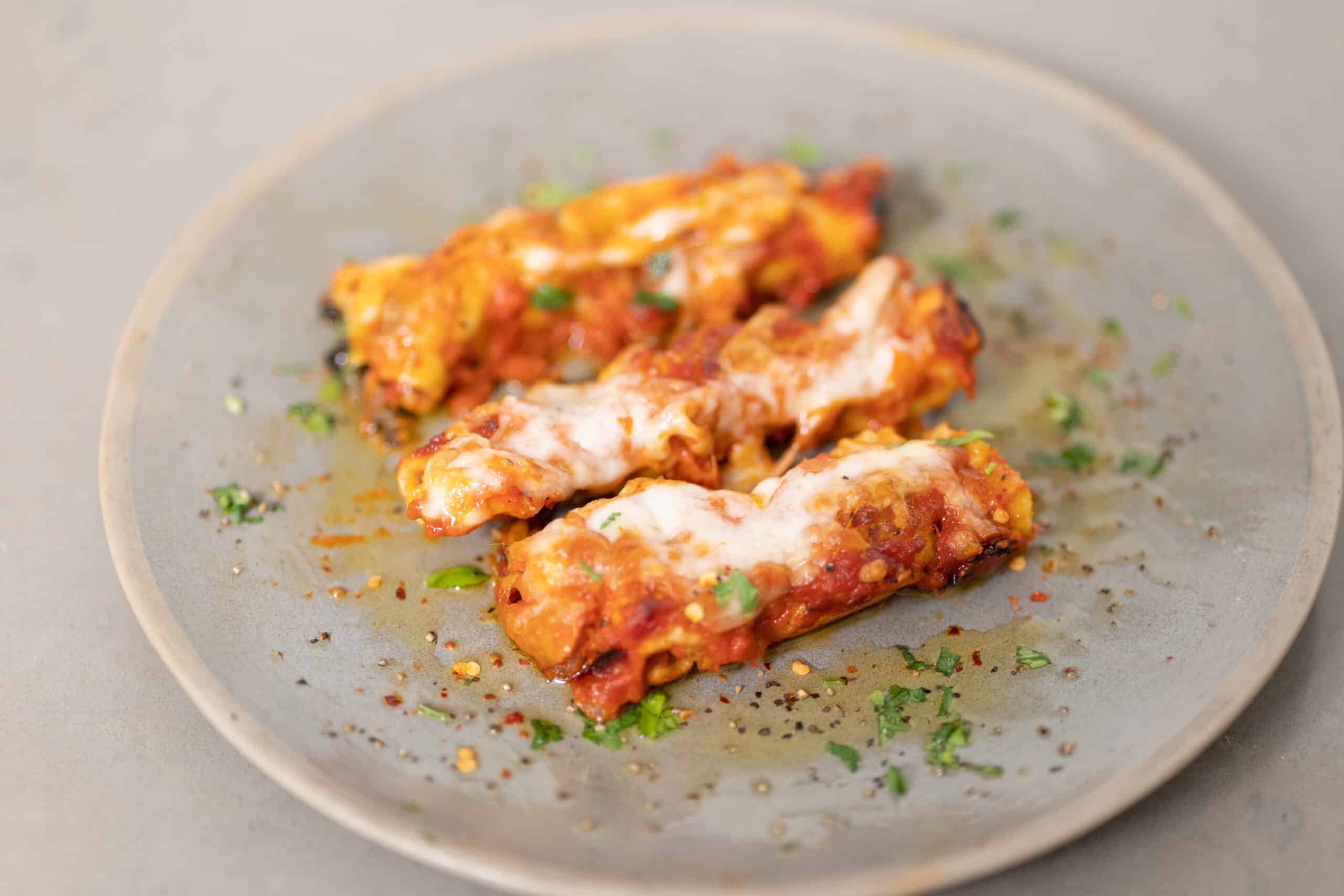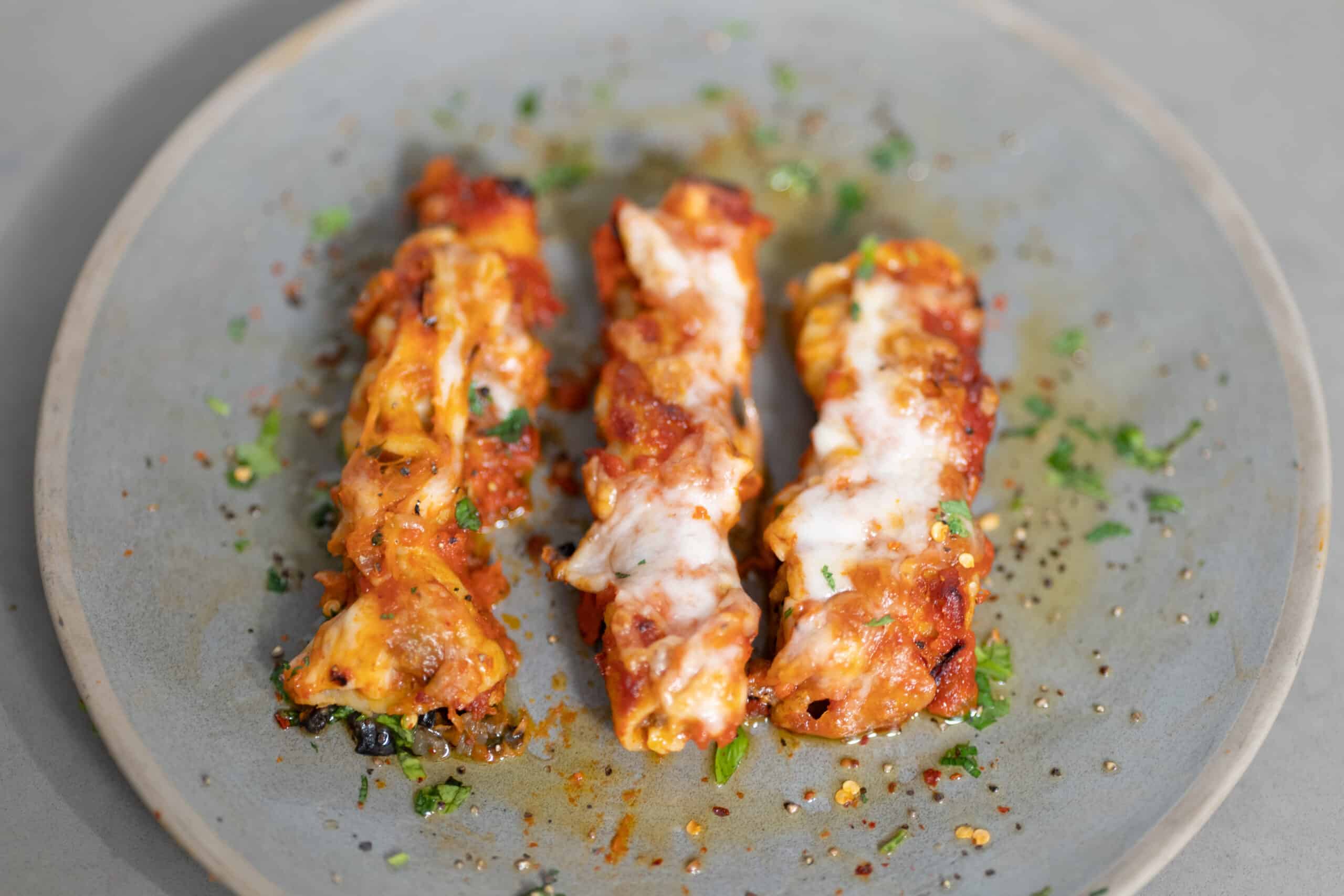 5. נסדר את הקנלוני בתבנית, נשפוך רוטב, נאפה חצי שעה.